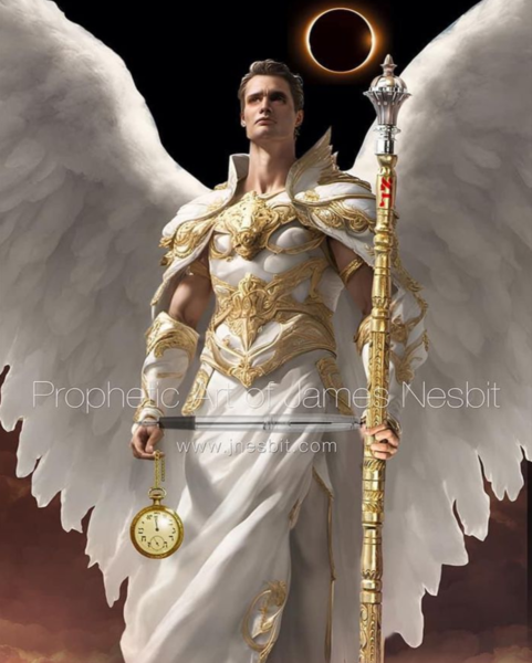 Er stellt einen Engel dar, der das Zeit-Tor markiert, das wir durchschreiten. Er hält eine Uhr in seinen Händen, und wie du sehen kannst, ist es Mitternacht.